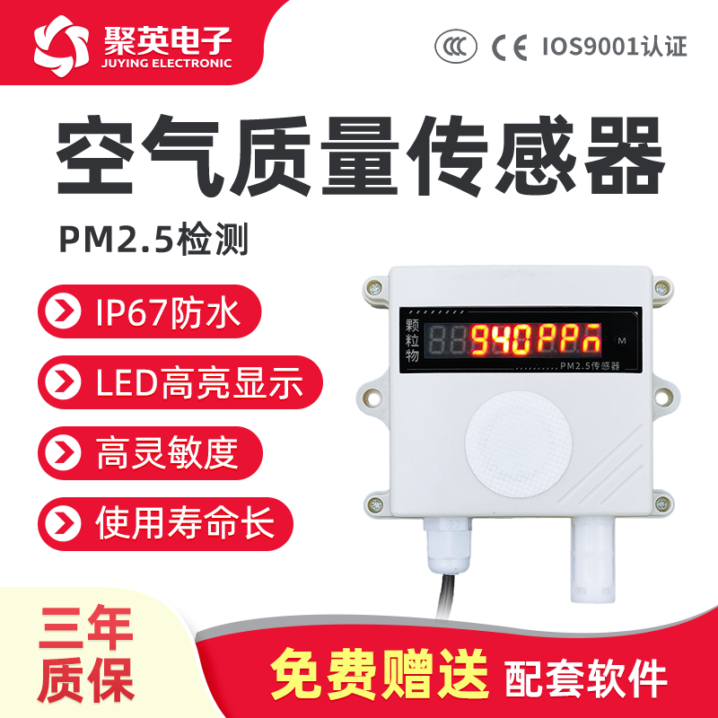 本设备采用是一款激光数字式 PM2.5 传感器。内置激光器和光电 接收组件,采用光散射原理,激光在颗粒物上产生散射光,由光电接收 器件转变为电信号,再通过特定算法计算出 PM2.5 质量浓度。设备还 具有长寿命、高精度、高重复性和高稳定性的特点。