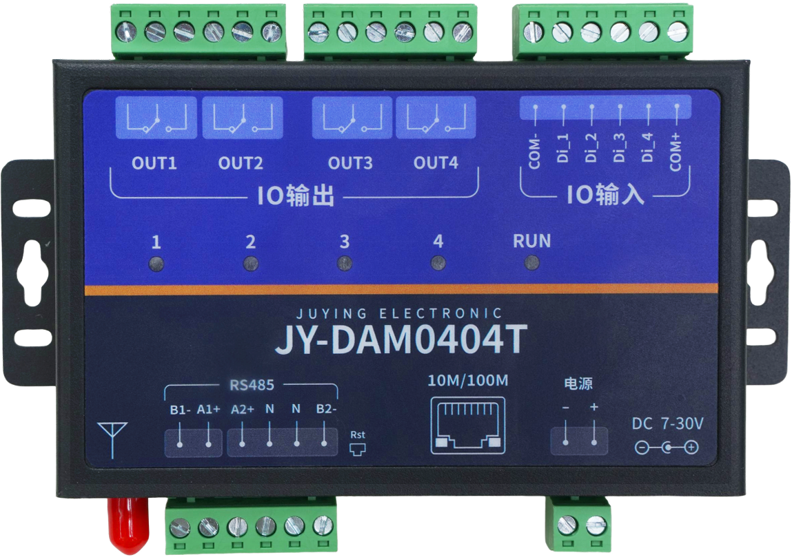 打开“聚英翱翔 DAM 调试软件 ”;串口设定栏:串口选择您电脑对应 COM 口,波特率选择设备默认波特率(9600)(未自己设置过波特率前),设备地址 填写“254 ”(254 为设备的广播地址),设备型号选择相对应型号,设置好以 上设备的 4 个参数后点击打开串口,点击继电器按钮“JD1 ”若继电器反应则连 接成功。