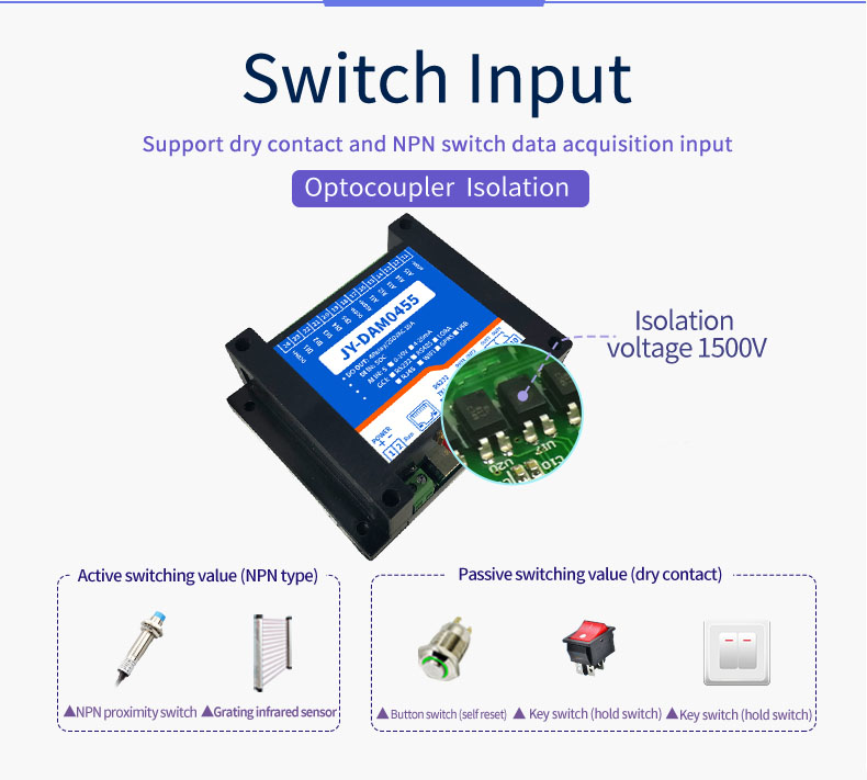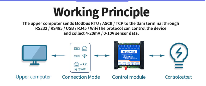 DAM0455lndustrial grade Network Control Module,4 Relay output (DO)5 Switch data acquisition (DI)5Analog data acquisition (Al),4-Way relay control output, contact isolation;5-Way switch input;5-Way analog inputs;Support single network port, single WiFi andnetwo...