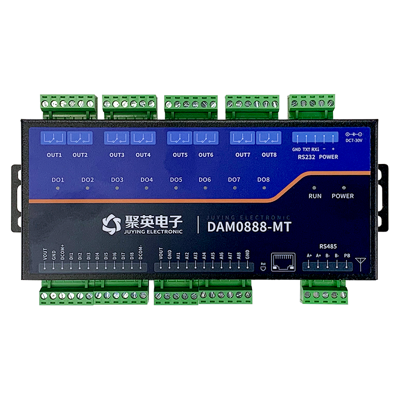 DAM-T0888-MT 工业级云系列网络版,8路继电器输出(DO)8路开关量采集(DI)8路模拟量采集(AI),8路继电器控制输出,触点隔离;8路开关量输入(NPN/干接点);8路模拟量(4-20mA、0-5V、0-10V)输入;支持单WIFI、单网口、WI...