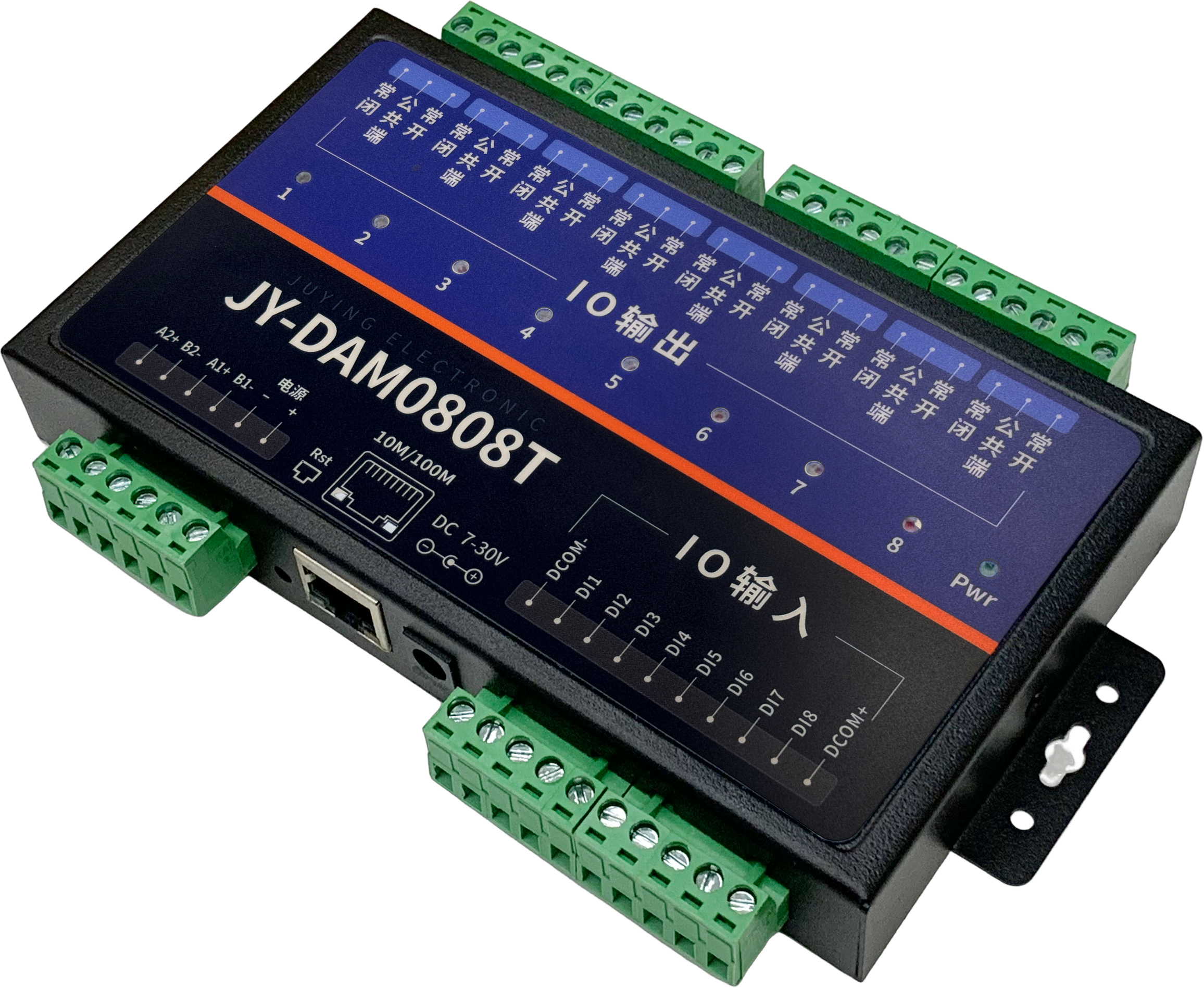 DAM0808-T 设备是我公司云系列设备中网络版的一种,设备通过连接Internet 广域网来进行通讯,使用我司配套的云平台软件可实现远程控制设备功能,每个设备具有唯一 ID 号方便用户进行二次开发使用。