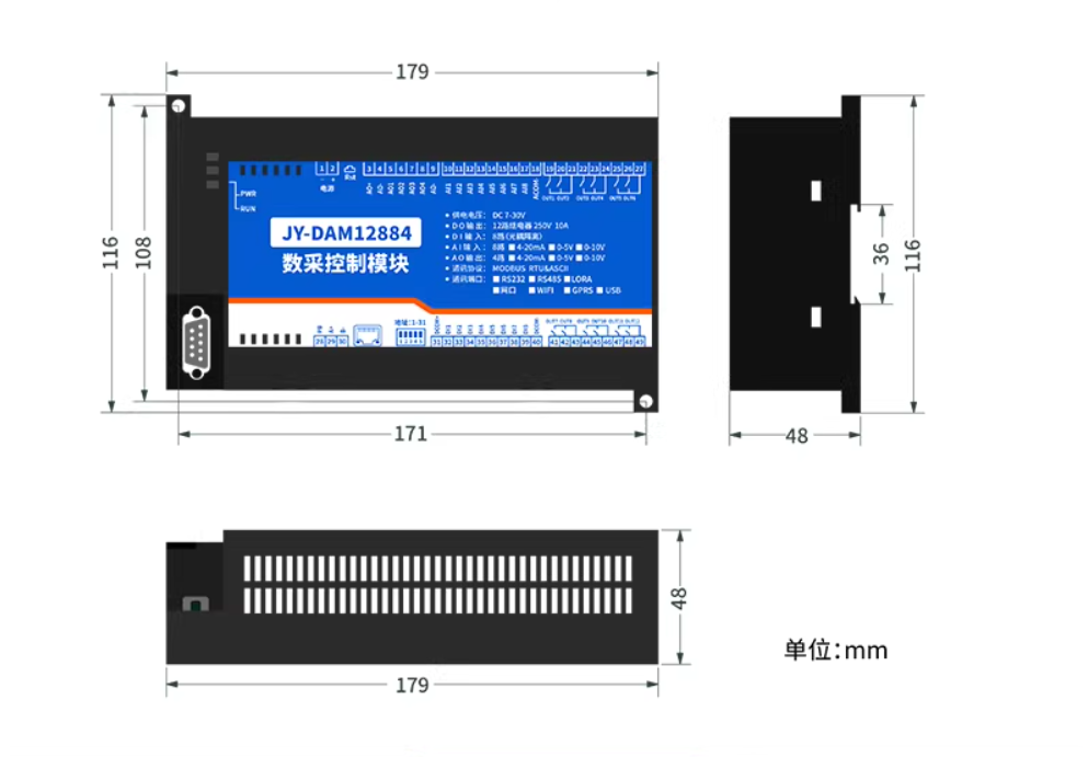 型号 | modbus | RS232 | RS485 | USB | WiFi | 继电器 | AD | 光耦 |